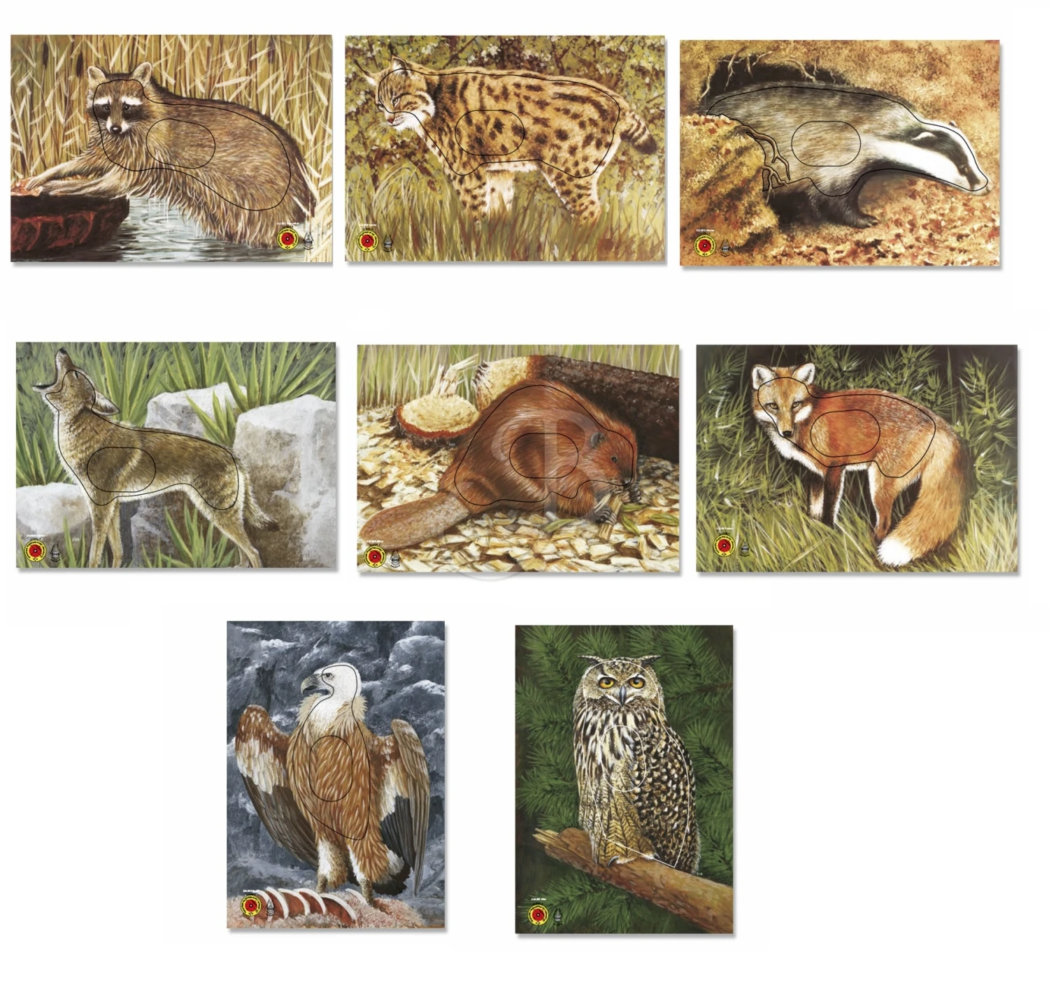 | Blason animalier | Blaireau, Castor, Coyote, Hibou, Lynx, Racoon, Renard, Vautour |